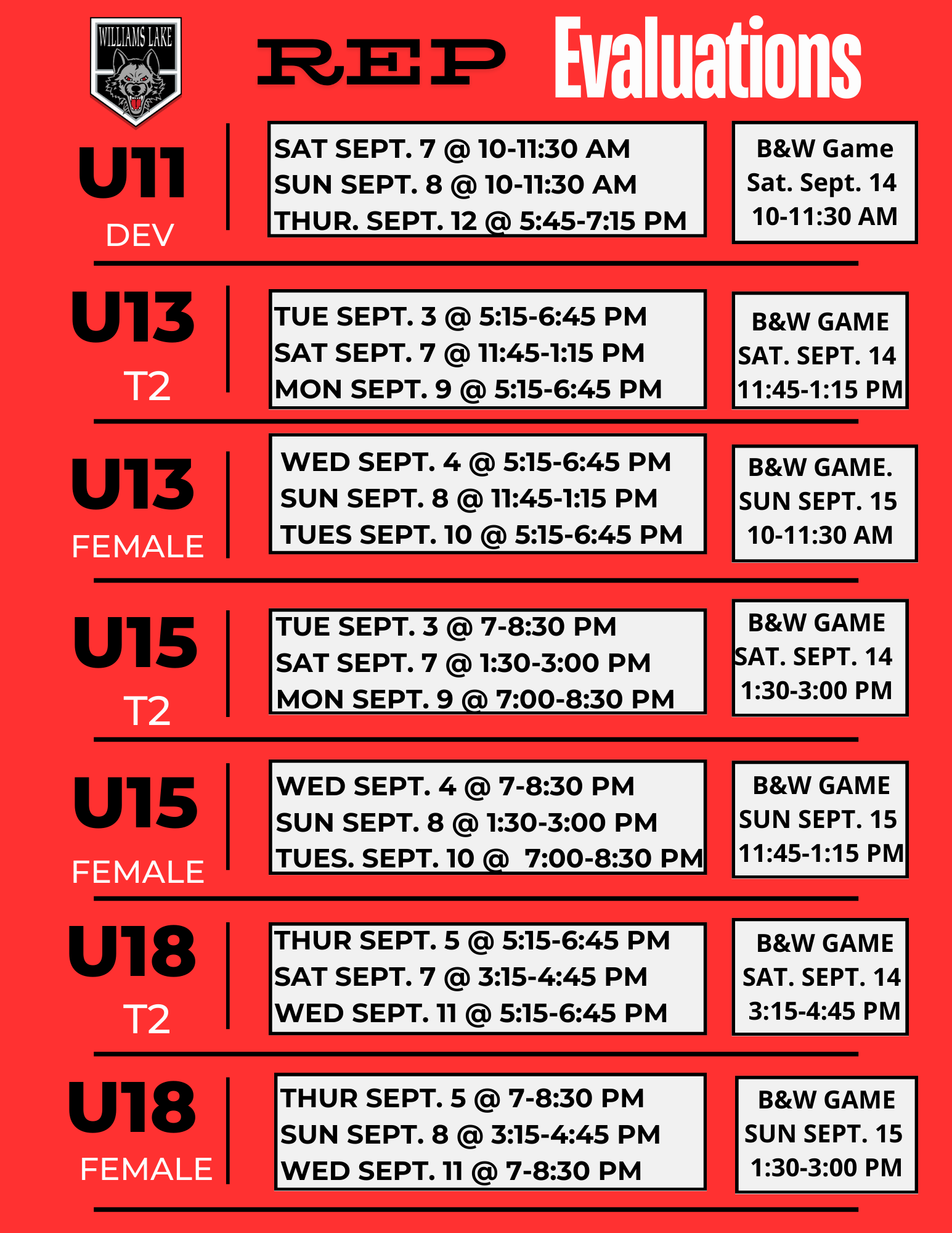 REP Tryout Dates & Times